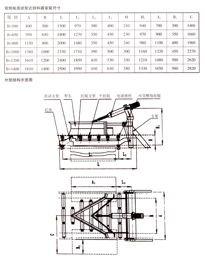 該產(chǎn)品進(jìn)一步完善了原ZNX型卸料器的不足之處,由于改用了雙犁頭、犁頭鎖緊裝置和新型的電液推桿,克服了卸料器犁料不盡、刮皮帶以及電動推桿過載能力差、常燒毀電機(jī)、頂彎絲桿、機(jī)械易損壞等缺點,為目前國內(nèi)先進(jìn)的一種卸料器。本機(jī)設(shè)計合理,損傷維修簡便,可就近或遠(yuǎn)距離控制,廣泛應(yīng)用于電力、冶金、煤炭、化工、建材和港口碼頭等輸送行業(yè)中。